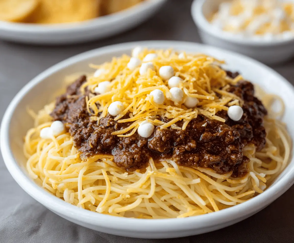 Now you have a delicious meal to share with family and friends. Cincinnati Chili is truly a comforting dish that’s perfect for any occasion! Enjoy! 🎉