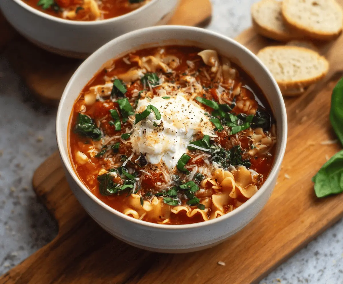 This One-Pot Vegetarian Lasagna Soup is a warm hug in a bowl! It’s packed with veggies, noodles, and cheese, all simmered together for comfort food that’s super easy to make.