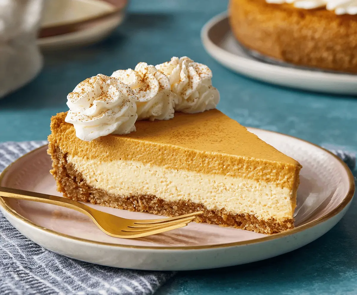 Honestly, it’s like the best of both worlds—cheesecake and pumpkin pie in one slice! I love serving it with whipped cream on top. It’s sure to make everyone smile! 🍰