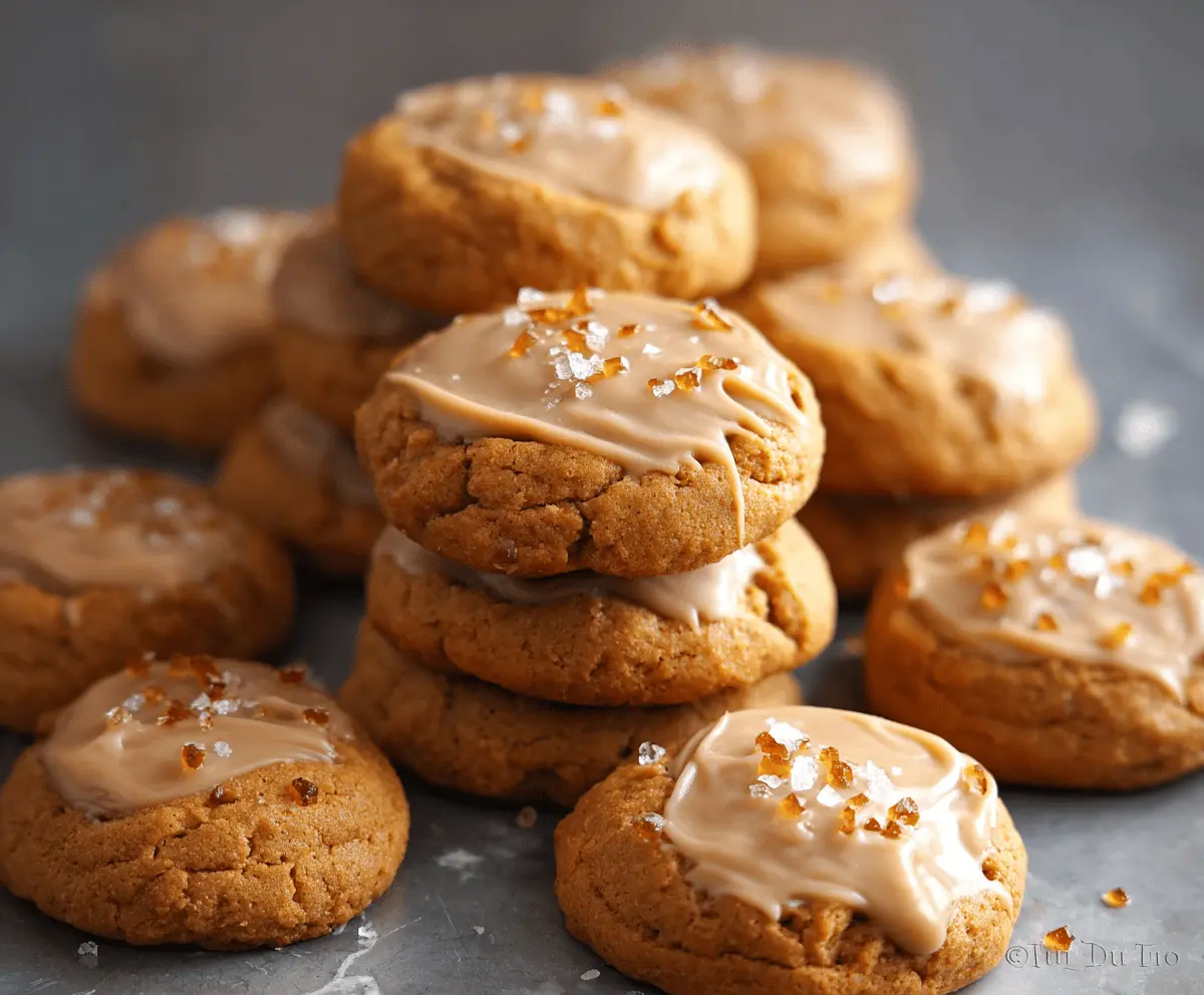 Once your cookies have cooled completely, spread a generous dollop of the salted caramel frosting on top of each cookie for that decadent touch.