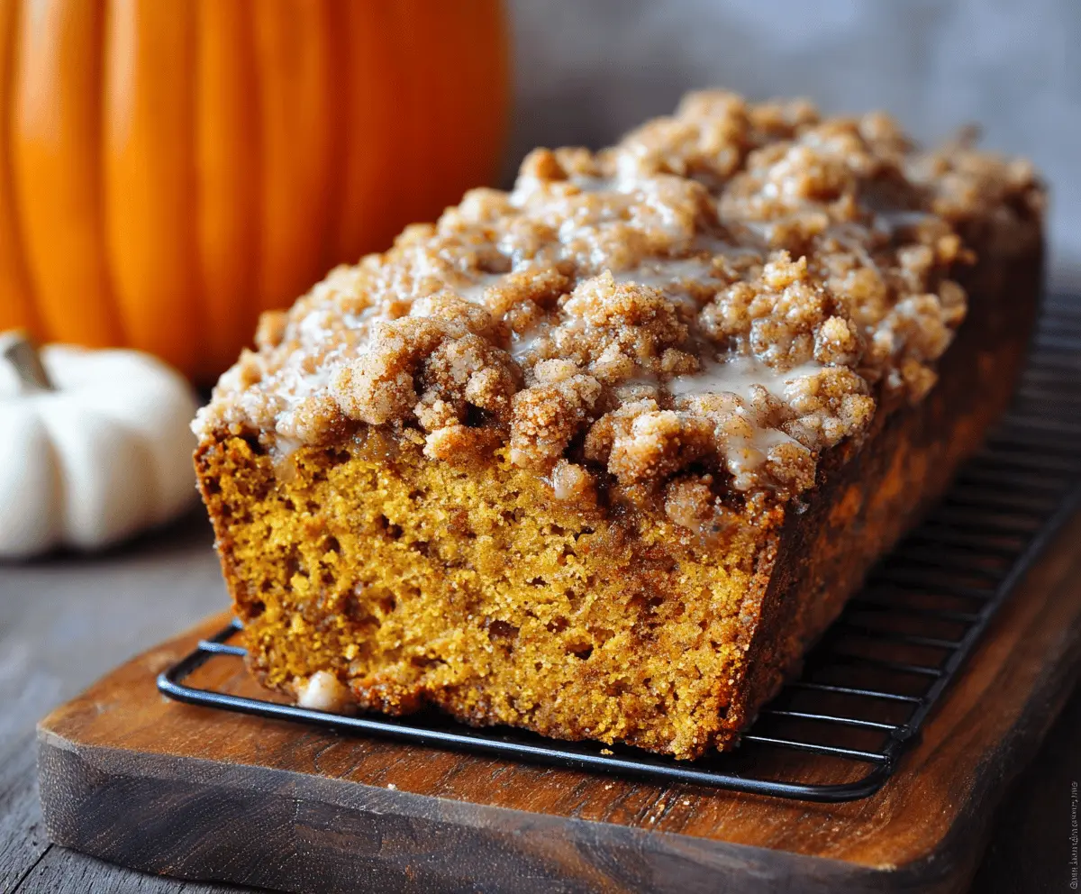 This Pumpkin Streusel Bread is a warm, sweet treat perfect for fall! With a spiced pumpkin batter and a crunchy streusel topping, it smells as good as it tastes.