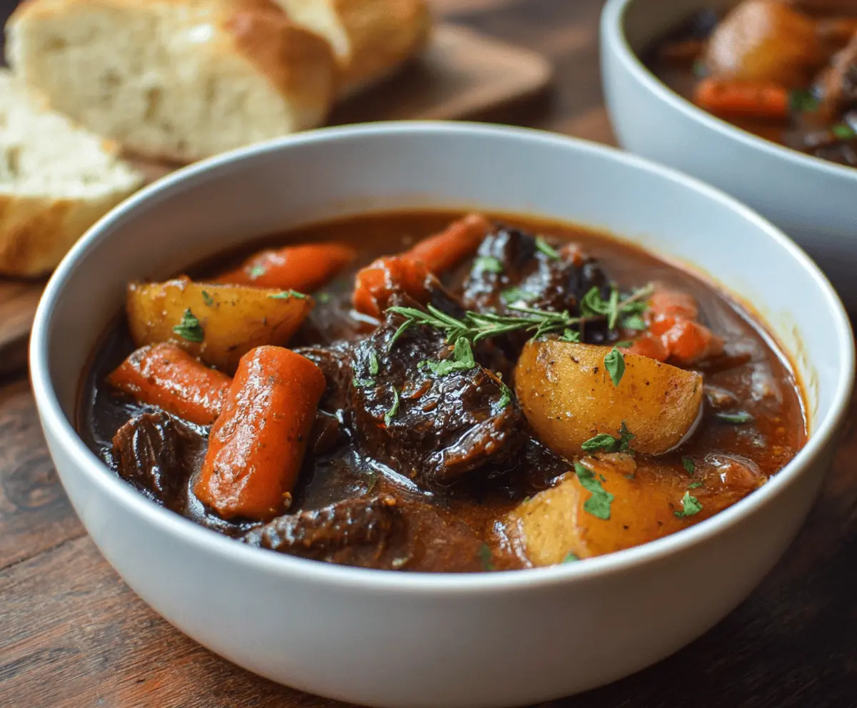 Enjoy your rich and hearty Red Wine Beef Stew with tender carrots and golden potatoes! Perfect for sharing with friends and family. Happy cooking!
